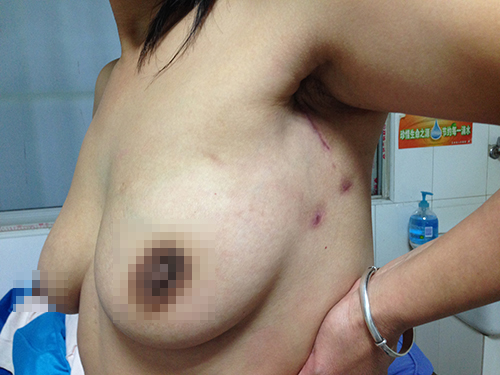 2015年11月9日上午,江西省人民医院血管乳腺外科来了一位特殊的病人,43岁的彭女士因发现左侧乳腺肿块半年多,收入院。患者抑郁寡欢,心情焦虑,情绪低落。入院后完善乳腺彩超检查提示:左乳外上象限低回声团,BIRADS分级4b级别,考虑乳腺癌可能。心电图、胸片、血生化检查未见明显异常。科主任姚武主任医师与病人做了详细体检后,并结合患者的具体情况,为患者精心制定了精准的个体化治疗方案——保乳术。