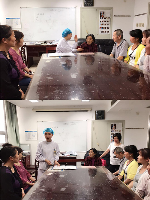 5月17日下午,呼吸科在王霞珠护长的主持下,举办了慢性阻塞性肺病知识大讲堂活动,当日下午,王护长召集所有家属到医生办公室,由刘淑芳护士给大家讲解慢阻肺知识,包括慢阻肺的发病机制、症状和护理措施。