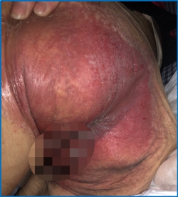 是胸痛还是哪里痛?护士邹梅接诊时不断的询问患者,老人家皱着眉说:“胸闷、胸痛稍缓解,是身上疼痛难忍……”邹护士常规检查全身皮肤,患者穿着厚厚的棉裤,棉裤里裹着厚重的尿不湿,尿都要快从尿不湿里面溢出来,打开尿不湿发现惊人的皮肤情况:整个会阴处及整个臀部、大腿内侧等多处的皮肤红肿、部分表皮破溃、似成熟的“红蜜桃”,随时会全线崩溃……