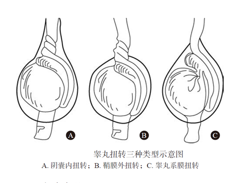 依照扭转位置不同,可将其分为阴囊内扭转、鞘膜外扭转及睾丸系膜扭转3类。