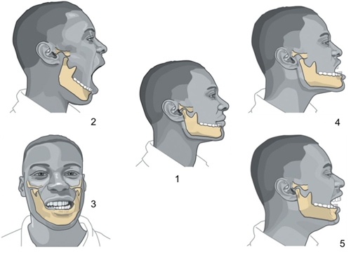 1.闭口;2.张口;3.左(右)偏移;4.前伸;5.后缩