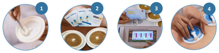 经皮治疗系统:指在皮肤或黏膜表面给药,使药物以恒定速度(或接近恒定速度)通过皮肤各层或黏膜,进入体循环,产生全身或局部治疗作用。结合不同的治疗穴位,可有效缓解新冠症状,对其他的慢性肺部疾病如慢性阻塞性肺病、慢性咳嗽、慢性支气管炎、支气管扩张、肺结节、肺气肿、肺纤维化、感冒咳嗽等亦有较好疗效。