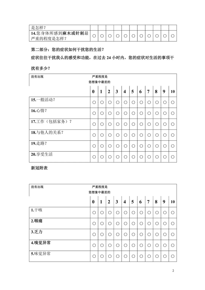 重症患者必须去医院,有其他疾病的患者也必须及时到医院就诊,除外其他疾病的轻症新冠患者可以居家。但是如果出现呼吸困难、胸闷气促、血氧值低于正常水平(95%以下),会有演变成重症的倾向就必须到医院就诊,另外,原有基础病加重,也应该及时就医。作者给大家一个简单的症状量表进行自测(该量表已在我院抗击新冠援沪、援吉等医疗队使用,具有一定的临床参考价值),如果症状积分加重25%以上,就应该及时到医院就诊。