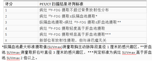 表2 治疗中评估(中期18F-FDG PET/CT)