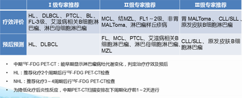 中期(化疗期间)HL(霍奇金淋巴瘤)化疗后2周期或NHL(非霍奇金淋巴瘤),尤其是DLBCL和外周T细胞淋巴瘤化疗后4周期后,在下一次化疗前的1-2天行PET/CT检查。