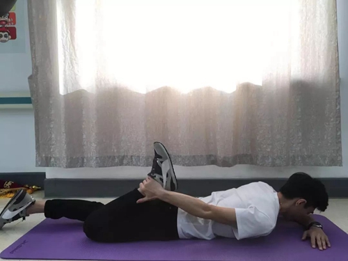 标准动作:俯卧位,同侧手握住踝关节,使足跟向臀部贴近