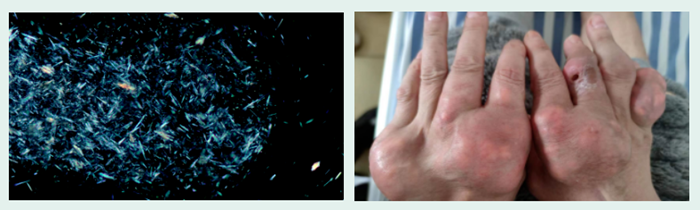 血液或组织中的尿酸超过一定的饱和度(>420μmol/L)会形成尿酸钠结晶,并沉积在肾脏、软组织、关节等部位,诱发局部炎症和组织破坏,导致关节炎(痛风性关节炎)、尿酸性肾病和肾结石,称为痛风。其中80%以上的痛风患者因痛风性关节炎就诊于风湿免疫科,所以有学者将痛风性关节炎代指痛风。