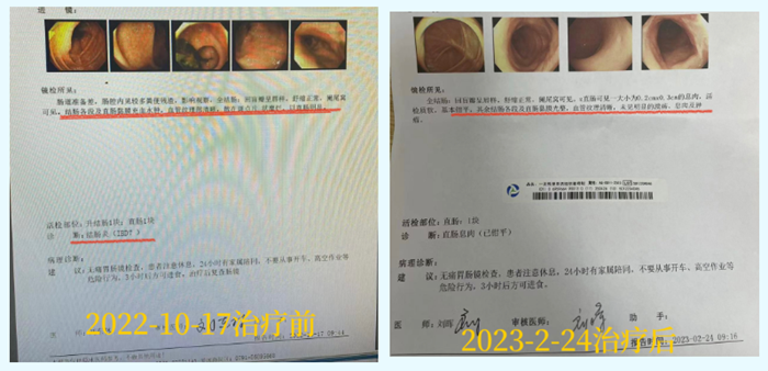 患者陈某,诊断为结肠炎,毛丽华副主任医师根据患者病情制定了口服中药、中药灌肠、艾灸等联合疗法,患者的症状得到快速缓解,生活质量明显提高,复查肠镜粘膜提示愈合。