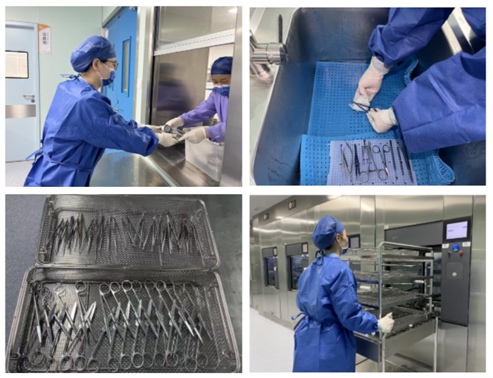 使用后的器械由密闭装载车运送到消毒供应中心的去污区,工作人员根据回收清单对器械进行回收、分类、清点,有问题及时与使用科室沟通。再根据器械的材质、精密程度、污染情况等选择手工清洗或机械清洗,包括冲洗、洗涤、漂洗、终末漂洗、消毒、干燥等流程,确保每件器械彻底、安全、有效的清洗消毒。