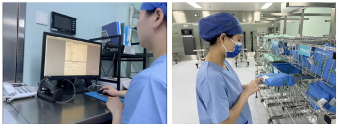 器械清洗消毒结束后检查包装及灭菌区的工作人员采用目测或带光源的放大镜对每一件器械进行检查,确保每一件器械表面、关节、齿牙处光洁,无血渍、污渍、水垢等残留物质和锈斑,功能完好无损毁。包装包括装配、包装、封包、注明标识等步骤,工作人员严格按照标准流程完成每一个环节,双人核对确认无误后包装注明标识。每个器械包都有“专属身份证”,追溯系统录入自动生成唯一的追溯标签贴,确保器械再处理信息可追溯。
