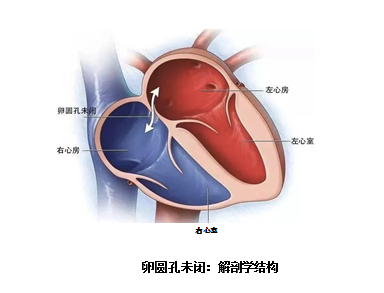 卵圆孔是胚胎时期心脏房间隔的一个生理性通道。出生后,随着左心房压力升高和肺动脉阻力降低,房间隔原发隔和继发隔相互靠近、融合,大多数人的卵圆孔在出生后一年内自行闭合,未能闭合者在房间隔中部形成一个潜在的通道,即卵圆孔未闭(PFO),大多数 PFO 患者无症状,但 PFO 的存在对健康或寿命有潜在危险。来源于全身静脉系统的栓子(包括血栓、空气栓、脂肪栓等 )可通过 PFO 进入体循环,导致一系列临床症状,包括偏头痛、缺血性脑卒中、心肌梗死、外周血管栓塞、减压综合征等。