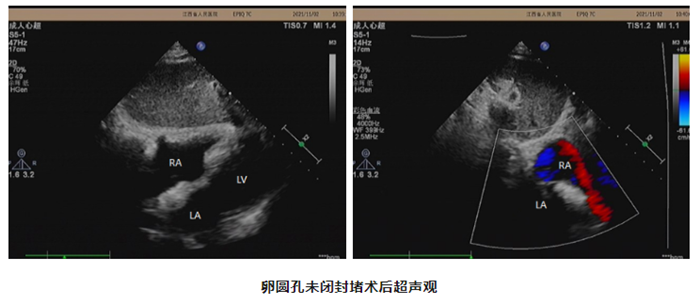 当患者经过一系列检查后,如果发现头痛头晕症状跟卵圆孔未闭有关,影响生活质量,卵圆孔未闭封堵术是治疗该病的很好方法。该方法是在局麻下,一般通过股静脉穿刺,导管进入右心房,用封堵器封堵卵圆孔。该手术具有避免开胸、创伤小、手术时间短,恢复快等优点。超声心动图可在术中监测、术后评价治疗效果以及术后随访等方面发挥重要作用。