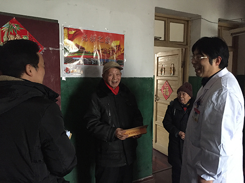 “感谢医院领导们的关心”、“祝医院发展蒸蒸日上”,接受慰问的同志们表示,近年来新班子进行了体制机制改革,医院积极向好发展。离休老同志苏锦文对李秋根院长说,他们为医院发展建设取得的成绩感到振奋,表示将持续关心关注医院,为促进医院的进步提供力所能及的帮助和支持。副院长吴晓牧本身就是一名“劳模”,荣获过诸多国家级先进工作者称号,他代表医院看望慰问了正在临床一线工作的心内一科主任盛国太,后者荣获2015年江西省先进工作者称号,可以说是一次“劳模慰问劳模”的生动案例。在援突专家、眼科副主任赖平红博士家里,副院长王晓华进门时,赖平红夫人祝琴博士正在操持家务,她告诉院领导南昌大学准备选派她赴加拿大继续深造一年,过完年就要出国。“我向学校反映能否派我去非洲学习,我的丈夫正在北非工作。学校说要去就要去发达国家学习人家的先进科学技术。”在笑声中,王晓华祝愿赖平红一家人早日归国,报效祖国。
