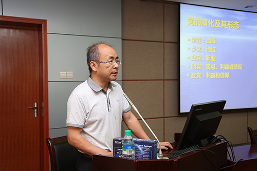 古金海以“政党和党章”为主题,从党的概念、演化及其形态说起,进而谈到政党的形成、政党和信仰的关系、党章的重要性等,语言生动形象、通俗易懂,并不时穿插着古今中外的史实和事例,台下党员听众听得津津有味,印象深刻。他表示,信仰是政党的必备条件,也是合格党员的必备条件,作为共产党员一定要有坚定的信仰。“共产党员的最高理想是实现共产主义,我相信共产主义一定能够实现”,他满怀信心地说。他还重点谈到了党章的重要性。“任何一个组织都有自己的章程和规矩,章程具有严肃性和强制性,入围即入规,守规矩必须学规矩。”因此,党员不仅要学习党章,更要学好党章。