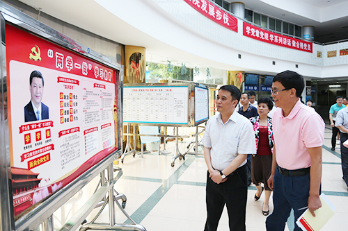 彭世东书记一行首先抵达省人民医院门诊大厅,查看了医院“两学一做”学习教育宣传栏、浏览了医院“两学一做”应知应会和图解,到门诊咨询台、门诊取药窗口党员服务岗党员了解工作情况。随后,彭世东一行抵达会议室,听取了院党委书记雷良华汇报医院工作开展情况和二部一支部书记曹平良汇报该支部“两学一做”学习教育情况。