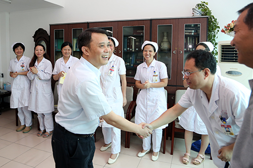 听完汇报后,彭世东对省人民医院“两学一做”学习教育给予充分肯定。他认为,省人民医院党委对“两学一做”学习教育高度重视,党政主要领导带头参加支部学习讨论并讲党课;医院“两学一做”学习教育务实创新,形式新颖,用H5做“两学一做”应知应会图解,建立了党务干部、总支书记以及支部微信学习群;同时,坚持问题导向,注重实效。医院列出了22条影响医院建设和发展的问题开展调研整改,将学习教育与解决问题相结合,充分体现了“两学一做”关键在“做”。