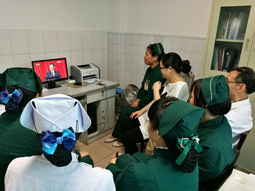 10月21日上午10时,纪念红军长征胜利80周年大会在北京人民大会堂隆重举行。按照省卫生计生委工作要求,医院于第一时间发动各党总支、各支部积极组织党员干部收听收看大会直播。或以支部为单位集中在学习室,或以小组为群体聚集在屏幕前,医院党员们通过电视、电脑、投影等方式集中观看了大会直播。