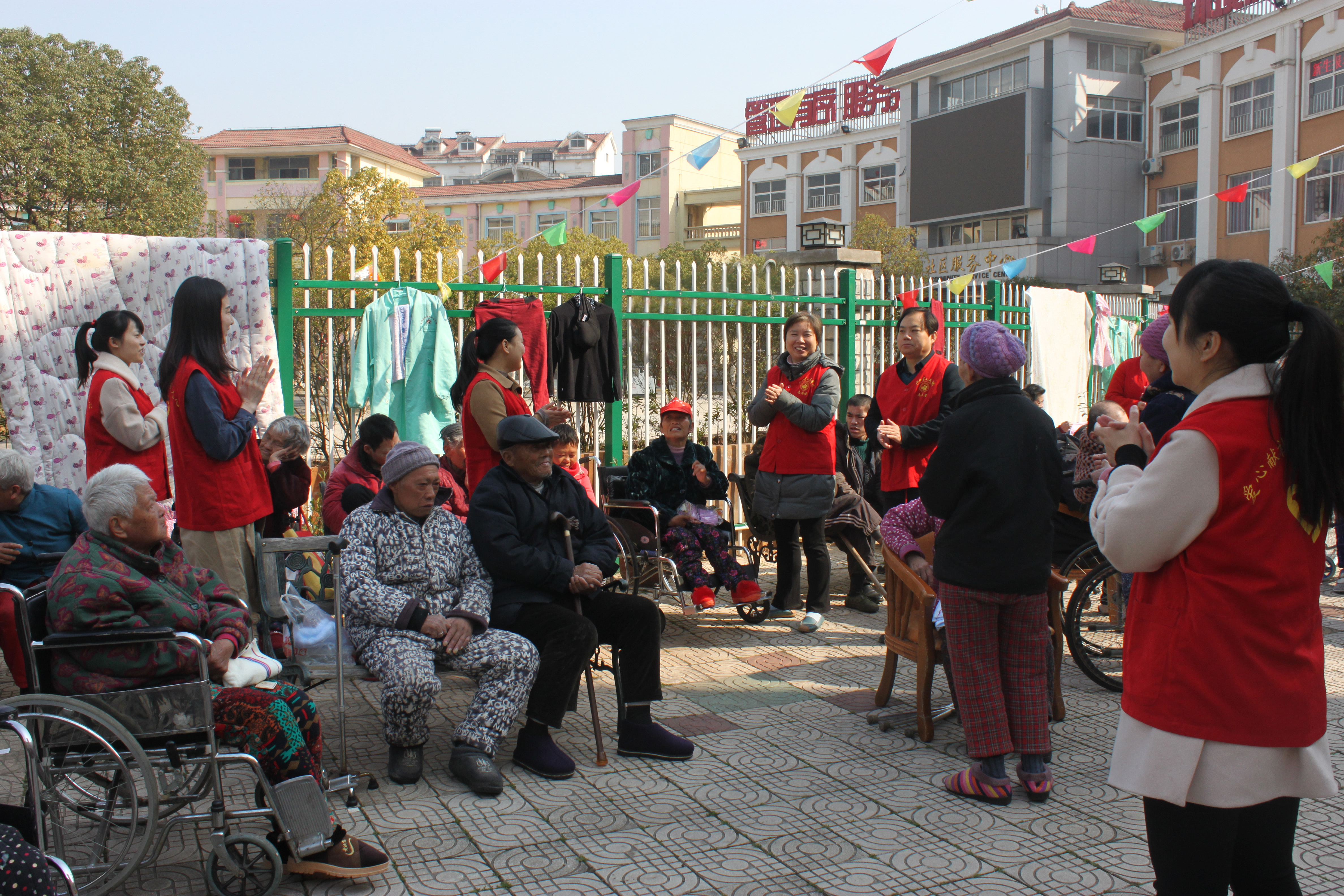 活动当天,阳光明媚,志愿者们小心地搀扶行动不便的老人到院里的广场晒太阳。“红马甲”与老人们齐聚在广场谈心聊天,还一同唱起了《学习雷锋好榜样》、《映山红》等歌曲,气氛十分和谐融洽。现场更有老人认出了志愿者说道:“我记得你们,你们是江西省人民医院的志愿者,这是你们第三年来看我们了,你们真是热心的活雷锋!”随后,志愿者们分成三组到各个楼层看望慰问卧床不起的老人,为他们提供健康咨询、血压测量等卫生健康服务。据统计,活动当天共看望老人近百名,并送上毛巾、药品等慰问品价值近2000元。临别时,老人们与福利院的工作人员都对志愿者此行表示了衷心的感谢。