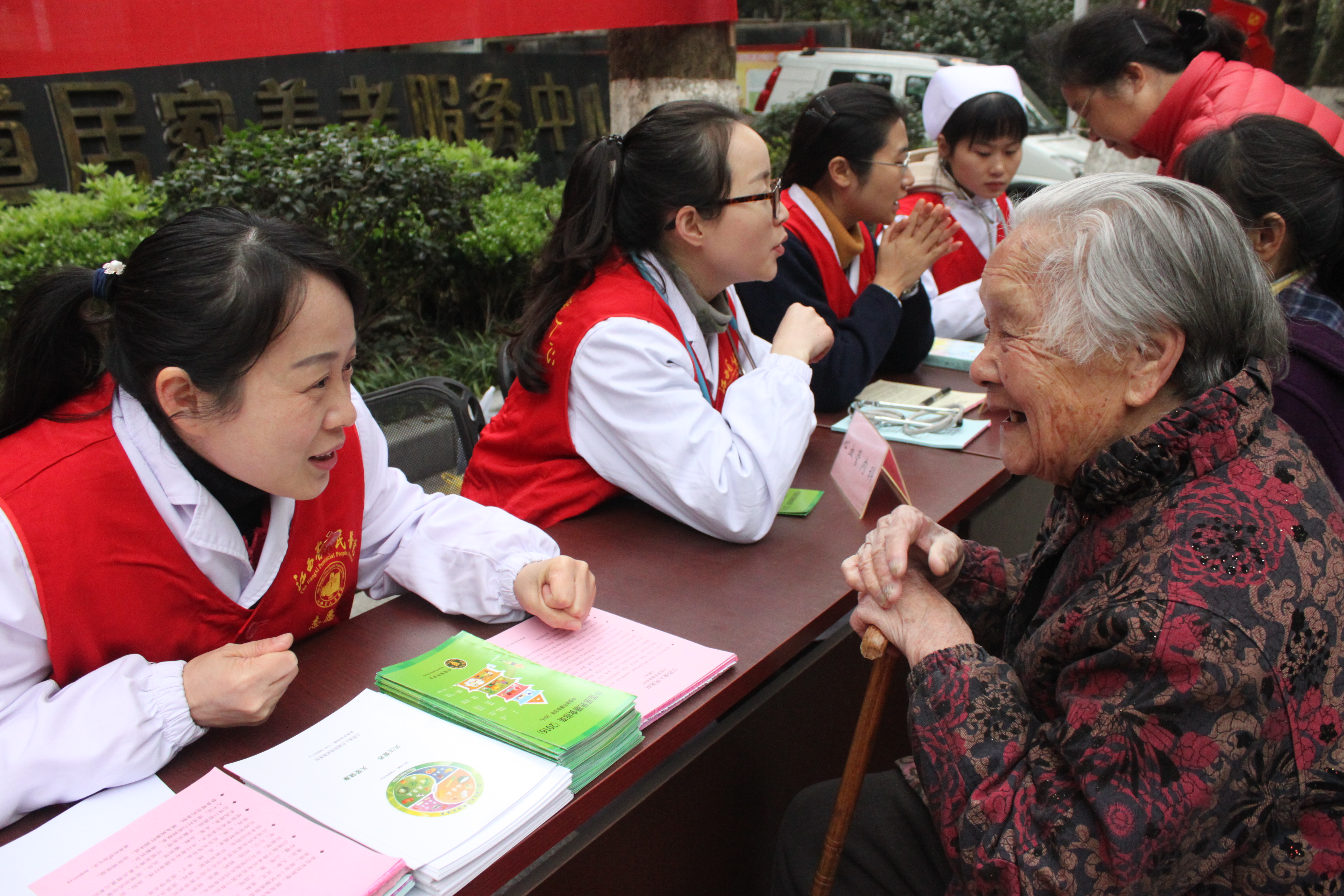 此次志愿服务群体以老人为主,医院专门安排了心血管内科、内分泌科、临床营养科、骨科和妇科等5个学科的医生和3名护士开展义诊、老年保健、养生咨询和血压测量等服务。活动现场,志愿者们热情耐心地为来往的社区居民服务,专家们根据测量结果和病情给予就诊,就饮食、生活等各方面提出建议,对有关并发症进行讲解,发放健康宣传资料,并耐心给予指导用药。