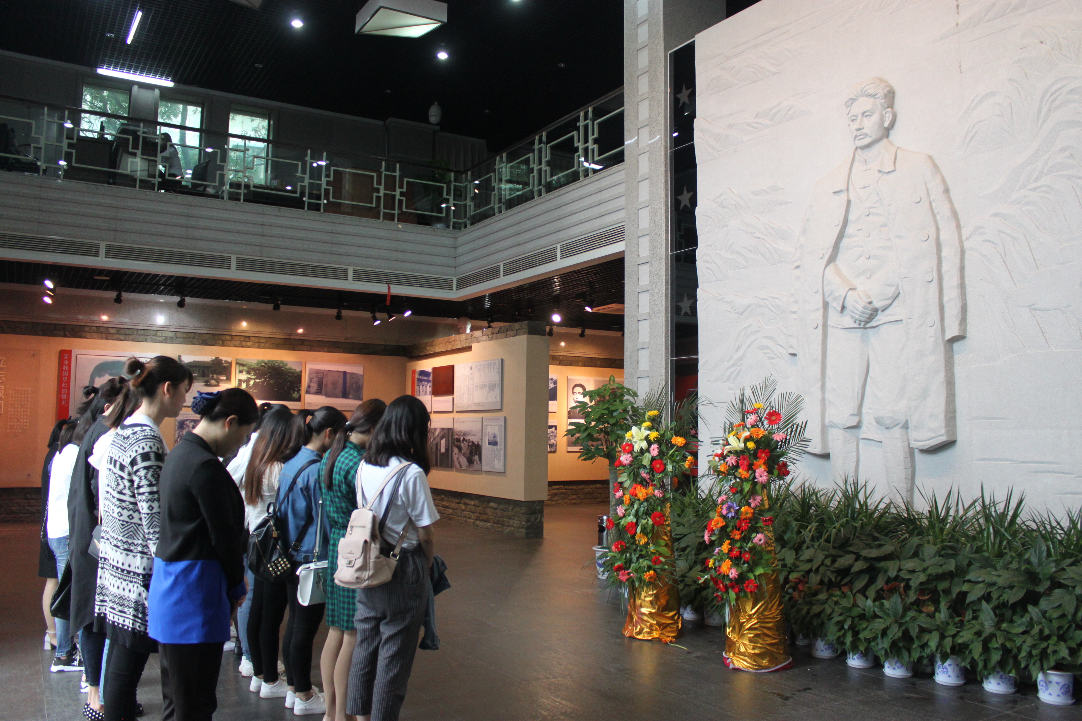 在方志敏烈士的雕像前,团员青年们集体默哀,以表达对革命先烈的敬仰和哀思。随后,大家怀着崇敬的心情,在讲解员的带领下参观了陈列馆“立志报国”、“求索系国”、“革命救国”、“以身殉国”四个展区,回顾了方志敏同志生平事迹和革命足迹,图文并茂地感受了方志敏同志革命、战斗、光辉的一生。