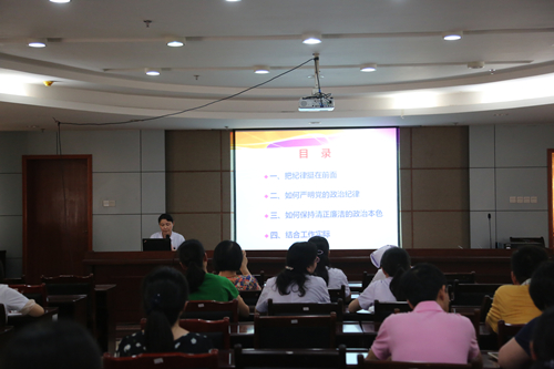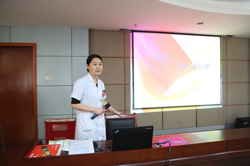 7月4日,党委委员、副院长霍亚南以严明党的纪律特别是政治纪律为主题,结合工作实际,为所分管的医务处、财务处、信息资料处(科)、营养科、远程会诊中心及急诊科、皮肤科、口腔科等部门干部和党员上党课,并就如何坚持把纪律挺在前面,如何保持清正廉洁的政治本色谈了自己的认识。
