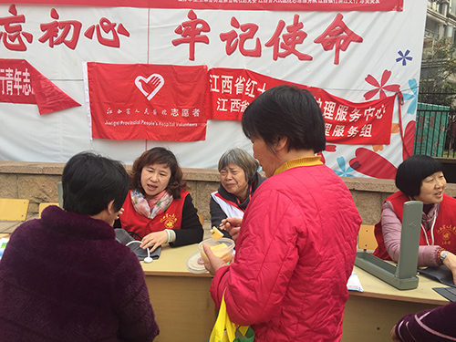 3月1日上午,“雷锋月”的第一天,为大力培育和践行社会主义核心价值观,发挥医院党员干部示范引领作用,大力营造“我为人人,人人为我”的良好风尚,省人民医院10名志愿者来到了紫金城社区开展学雷锋进社区志愿服务活动。