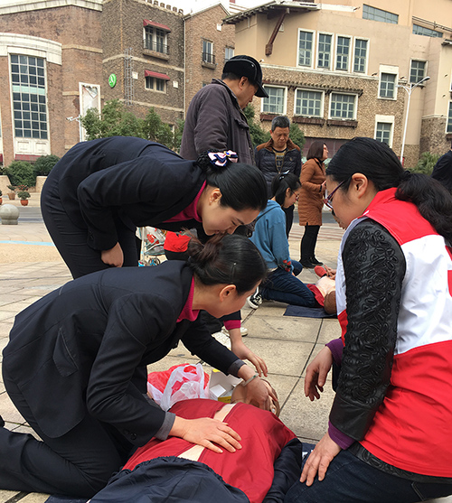 此次志愿服务主要是救护培训为主,医院专门安排了取得CPR专业资质和工作经验丰富的3名护士长进行了现场操作展示和培训。随着现代生活节奏的加快和老龄化,院外心源性猝死的事件时有发生,所以掌握救护培训至关重要,对提高心脏骤停患者生存率及预后具有重要意义。随后,志愿者一行还开展了老年保健、养生咨询和血压测量等服务。活动现场,志愿者们热情耐心地为来往的社区居民服务,根据测量结果和病情给予指导,就饮食、生活等各方面提出建议,对有关并发症进行讲解,发放健康宣传资料,并耐心给予指导用药。