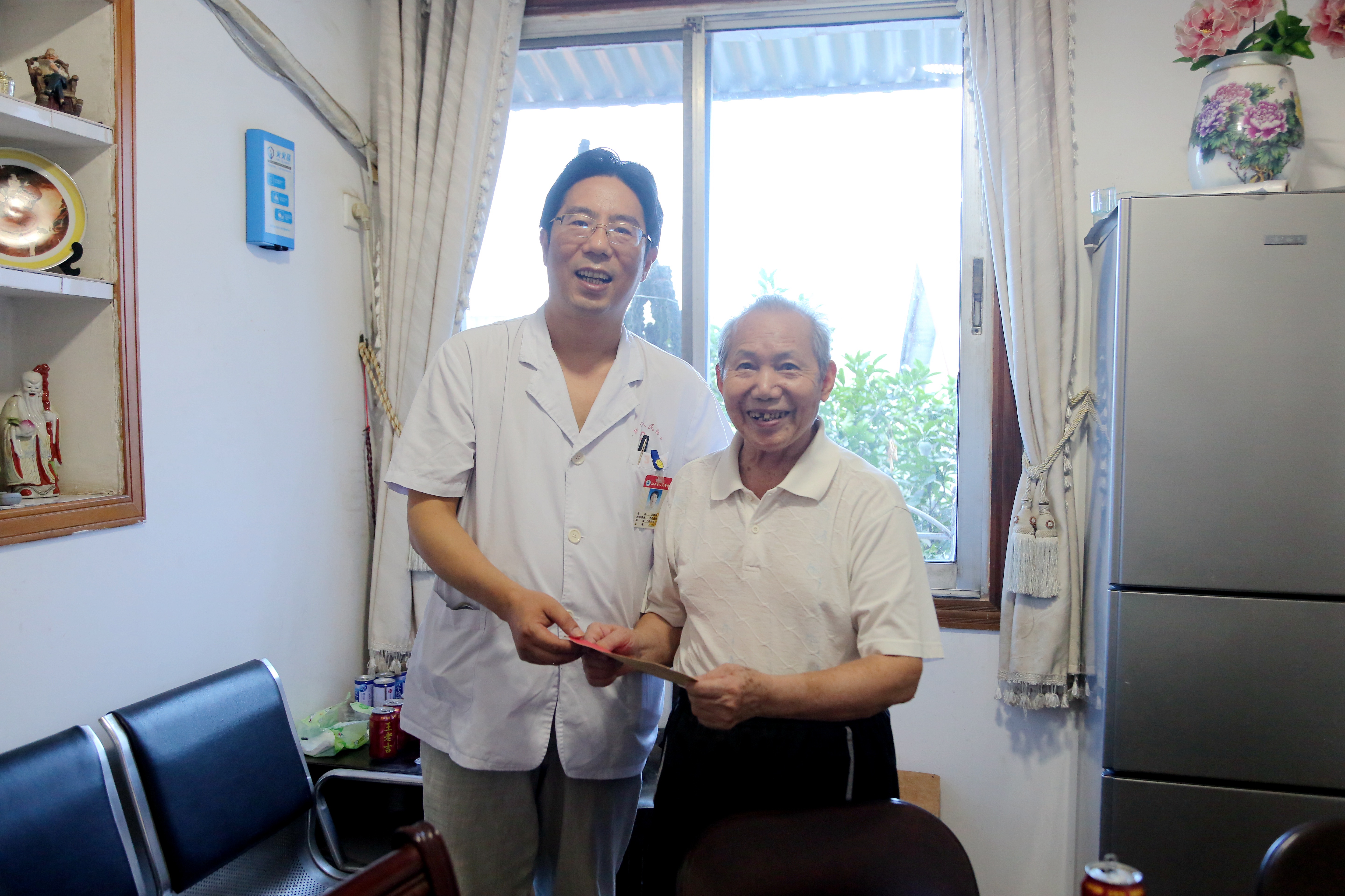 此次活动共走访慰问了李怀珍、朱本章、何庆熙三位退伍军人。王晓华院长向老同志们致以崇高的敬意和节日的祝福并送上慰问金。走访期间,恰逢李怀珍和朱本章两位老同志生病住院。王晓华一行来到病床前,与他们进行亲切交谈,嘱咐他们保重身体,早日康复。