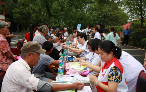 为进一步弘扬“敬佑生命、救死扶伤、甘于奉献、大爱无疆”的卫生健康崇高精神,深入贯彻落实党的十九大精神,不忘初心,牢记使命,践行健康中国梦,发挥党员先锋模范作用。2018年8月25日上午,江西省人民医院外科总支书记覃杰夫、外科五支部书记徐全带领外科五支部党员及泌外科、骨科和神经外科部分党员一行22人来到革命老区鹰潭市贵溪周坊,与鹰潭市人民医院党委专职副书记李闽强、外科支部书记程芬带领的外科党支部专家团队一同开展了以“健康进基层,党员在行动”为主题的大型义诊活动。为当地患者和居民提供常见病、多发病的健康体检、诊断治疗和健康咨询,并为他们免费发放所需药品和健康教育宣传资料。