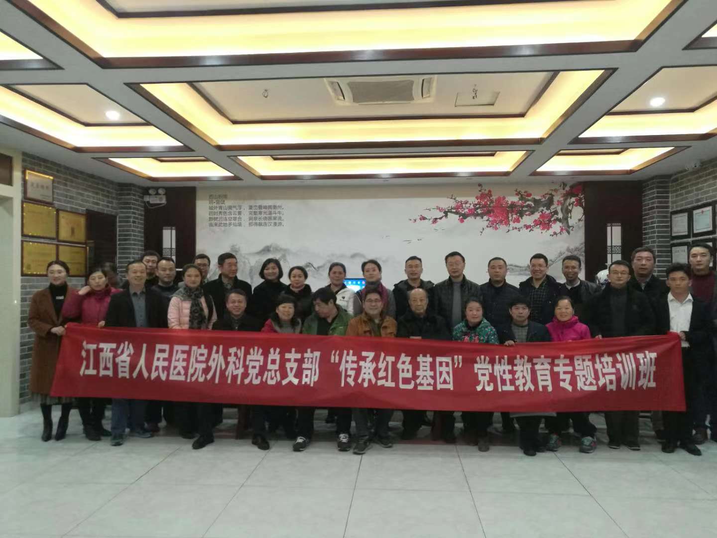 党性是党员干部立身、立业、立言、立德的基石,必须在严格的党内生活锻炼中不断增强。为贯彻落实省人民医院外科党总支部关于大力推进党风廉政建设、加快促进各项工作的部署,增强党员党性修养、提升党员综合素质,培养造 就一批党性廉洁、工作高效的队伍,根据外科党总支部的统一安排,在 2018 年 12 月 22 日开办了《江西省人民医院外科党总支部“传承红色基因”党性教育专题培训班》。