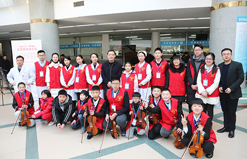 1月31日,江西省人民医院在门诊大厅举行“省医之声”钢琴演奏启动仪式,受到患者及家属的纷纷“点赞”。院党委书记蔡晓季出席活动并和20名钢琴、小提琴演奏志愿者合影留念。