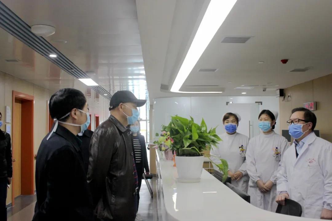 王金林一行先后走访了省人民医院红谷滩院区呼吸科病房、神经内科病房、门诊诊疗室以及爱国路院区一部病区;检查了疫情防控执勤点、发热门诊预检分诊以及评优评先公示情况。省人民医院党委书记、院长李秋根汇报了医院疫情防控工作、援鄂及援助新余抗击新冠肺炎情况、红谷滩院区建设规划以及学科建设和人才建设等工作。