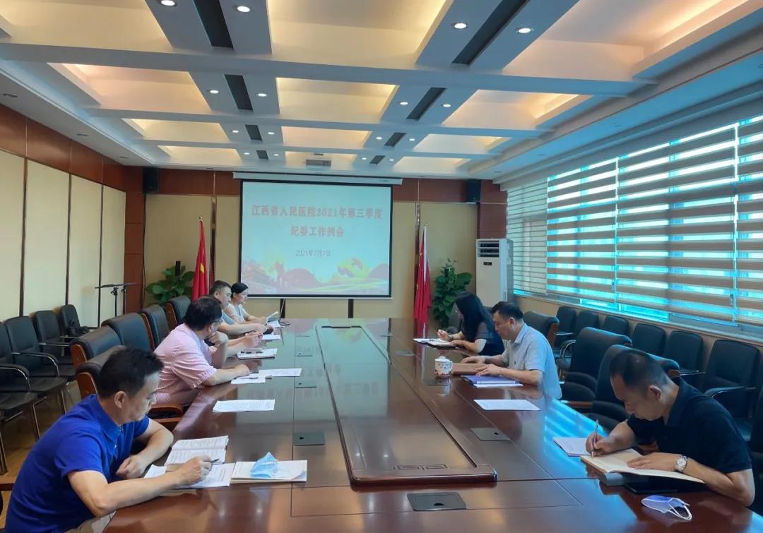7月7日下午,省人民医院纪委召开2021年第三季度纪委工作例会,医院纪委委员、纪检监察室人员参加例会,会议由院纪委书记欧阳慧勇主持。