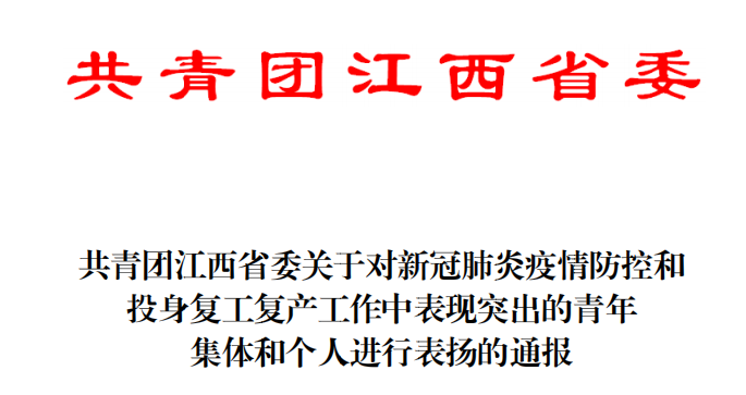 3月11日,共青团江西省委发文,对新冠肺炎疫情防控和投身复工复产工作中表现突出的青年集体和个人进行表扬通报。