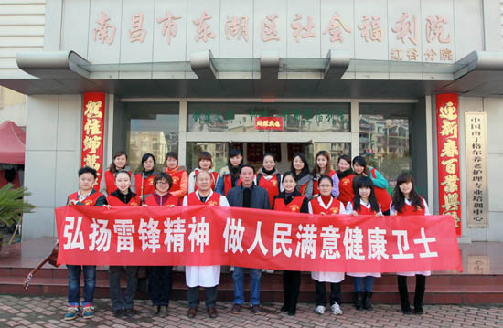 “学习雷锋好榜样,忠于革命忠于党……”3月4日上午,红谷滩凤凰花园的东湖区社会福利院里欢声笑语,其乐融融。来自江西省人民医院的团员青年志愿者们用自己并不娴熟的歌喉引得老人们喜笑颜开、掌声连连。在福利院内,志愿者与老人们围坐在一起,在三月和煦温暖的春光下倾心交谈,老人们尽情享受着年轻人带来的激情和快乐。