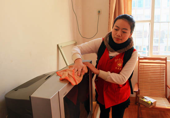 “爷爷,您的指甲长了,我给您剪剪。”刚擦完桌子的志愿者许庆春细心地看到一位老人的指甲很长试探着问,“好呀,那谢谢你啦!”老人高兴的答应了。小许拿出指甲剪,小心翼翼地给老人剪起了指甲。“慢点、慢点!”一旁的志愿者徐佳宝小心地提醒着。来到另一位老人的房间里,志愿者邹敏发觉房间异味很重,立即上前打开了窗户。得知这位老人的行动不便卧床多年,她马上撸起袖口,仔细地把室内的被子和房间打扫整理了一遍。志愿者王爱瑶医师在关切地询问老人的身体状况后,认真地给老人进行体检,数脉搏、听心率、测血压,当测得血压高达190/110mmHg,立即给老人含服降压药,并提醒老人要按时吃药。声声关爱,句句嘱托,志愿者们在很短的时间里与老人们结下了深情厚谊。