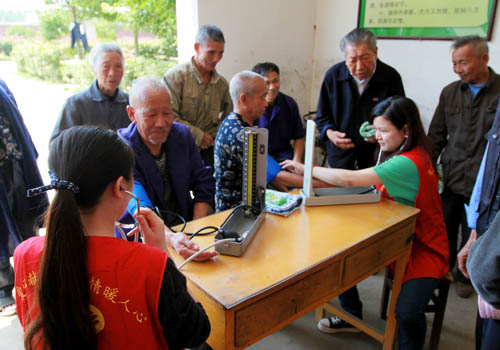 5月11日上午,艳阳高照,在院团委副书记黄老师的带领下,12名团员青年志愿者乘车前往黄马乡敬老院。走过一段黄泥乡村小路,来到一座农庄式的屋舍门前,敬老院的负责人热情地把大家引进门。团员青年们迫不及待地忙开了,原先安静祥和的敬老院一下子热闹起来,老人们听说大家伙儿们是来义诊的,一个个都笑容满面。在义诊现场,青年志愿者们亲切地与老人们交谈,仔细询问老人们的身体情况,耐心讲解老年疾病防治知识和老人饮食起居中的注意事项,指导老人注意健康的生活方式,并为老人们逐一测量血压。“大爷,您的血压稍微偏高,平常不要吃太咸的东西,还要注意休息”,“大娘,您的血压很正常,平常身体不错吧”,一位大娘听说自己血压有点偏高,心理就很紧张,团员青年们赶紧对其进行了心理疏导,告知其平时生活中应该注意的一些事项,通过耐心指导,大娘紧张的情绪慢慢舒缓了。老人们都说,年龄大了身体难免会有毛病,这次义诊搞得很好、很有帮助,让这里许多行动不便的孤寡老人深深感受到了省人民医院青年们奉献的温暖和关爱。