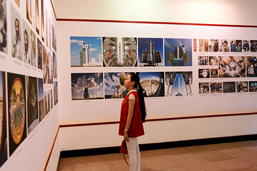 偌大的展览厅里大家井然有序地观看着每一幅图片和说明,此次展览主要为大家展示了在毛泽东等老一辈领导人的带领下,中国科学技术逐步强盛的发展历程。从一幅幅巨大的照片上,我们再次重温了那些曾为中国两弹一星事业做出过伟大贡献的科学家们,将他们的功绩铭记在心。他们凭借超强的毅力克服了各种难以想象的艰难险阻,不断突破一个又一个技术难关,最终为祖国取得了为之自豪的伟大成就!