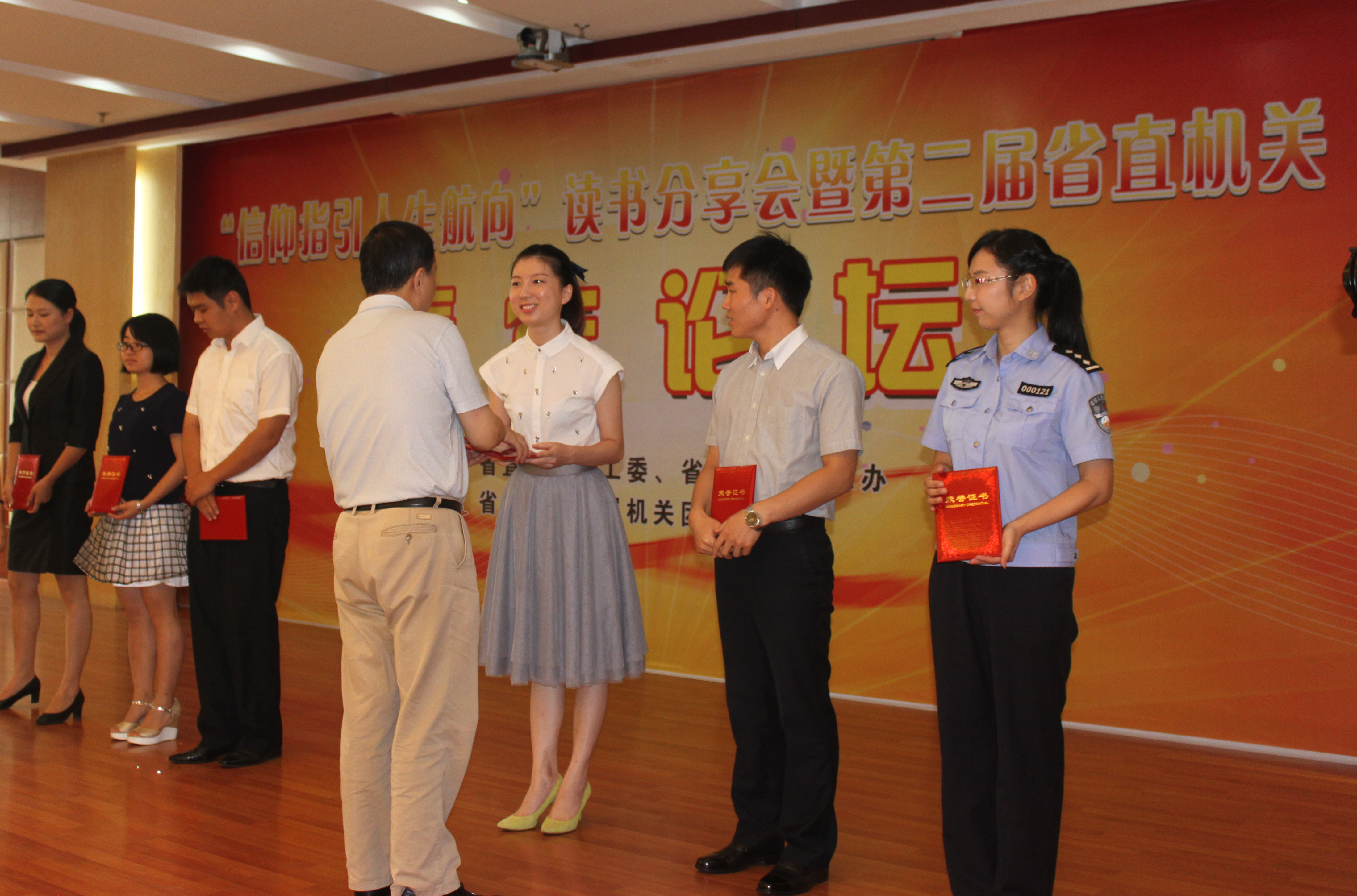 8月27日,“信仰指引人生航向”读书分享会暨第二届省直机关青年论坛在省水利厅三楼会议室举行,省纪委常委、省直机关工委巡视员邓剑锋和省水利厅相关领导出席会议,省直机关各界的100多位青年代表参加论坛。省人民医院应邀派青年代表参会并作交流发言。