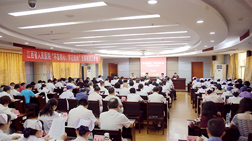 6月17日下午,江西省人民医院召开“不忘初心、牢记使命”主题教育工作会,认真贯彻落实党中央、省委、省卫健委关于“不忘初心、牢记使命”主题教育工作的重要部署,引导全院广大党员干部更加自觉地践行党的初心和使命,更加奋发有为地推动医院改革发展各项工作落到实处、取得成效。省卫健委巡视员、直属机关党委书记李晓琼,直属机关专职副书记罗峻松出席会议,全体在家院领导,全院副护士长以上中层干部,各党总支、支部书记近200人参加会议。院纪委书记欧阳慧勇主持会议。