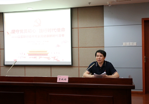 以张富清、甘祖昌两位老同志的事迹为引,李秋根首先为大家讲述了什么是共产党人的初心、什么是医务工作者的初心、为什么要“不忘初心”,并分享了自己的初心。他指出,我们须铭记入党初心、入职初心,立好信念“航向标”、筑牢政治“压舱石”、挑起责任“硬担子”、磨砺能力“金刚钻”、用好作风“传家宝”,践行好时代新使命。作为共产党员,要忠于党的使命、忠于党的事业,以攻坚克难的决心,坚定响应健康中国战略的号召;作为医务工作者,则要明确目标、转变观念,把以治病为中心转变为以人民健康为中心,不断提升诊疗水平,为广大患者群众提供综合、连续、优质的医疗健康服务。
