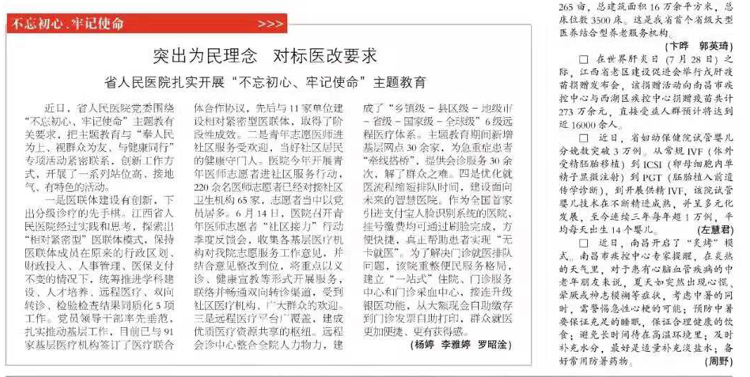 媒体报道丨省人民医院扎实开展“不忘初心、牢记使命”主题教育