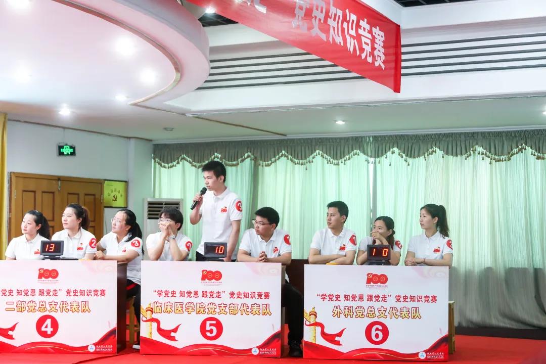 经过激烈角逐,最终机关后勤党总支代表队夺得桂冠,外科、门诊医技党总支代表队并列二等奖,二部、内科党总支、临床医学院研究生党支部代表队并列三等奖。