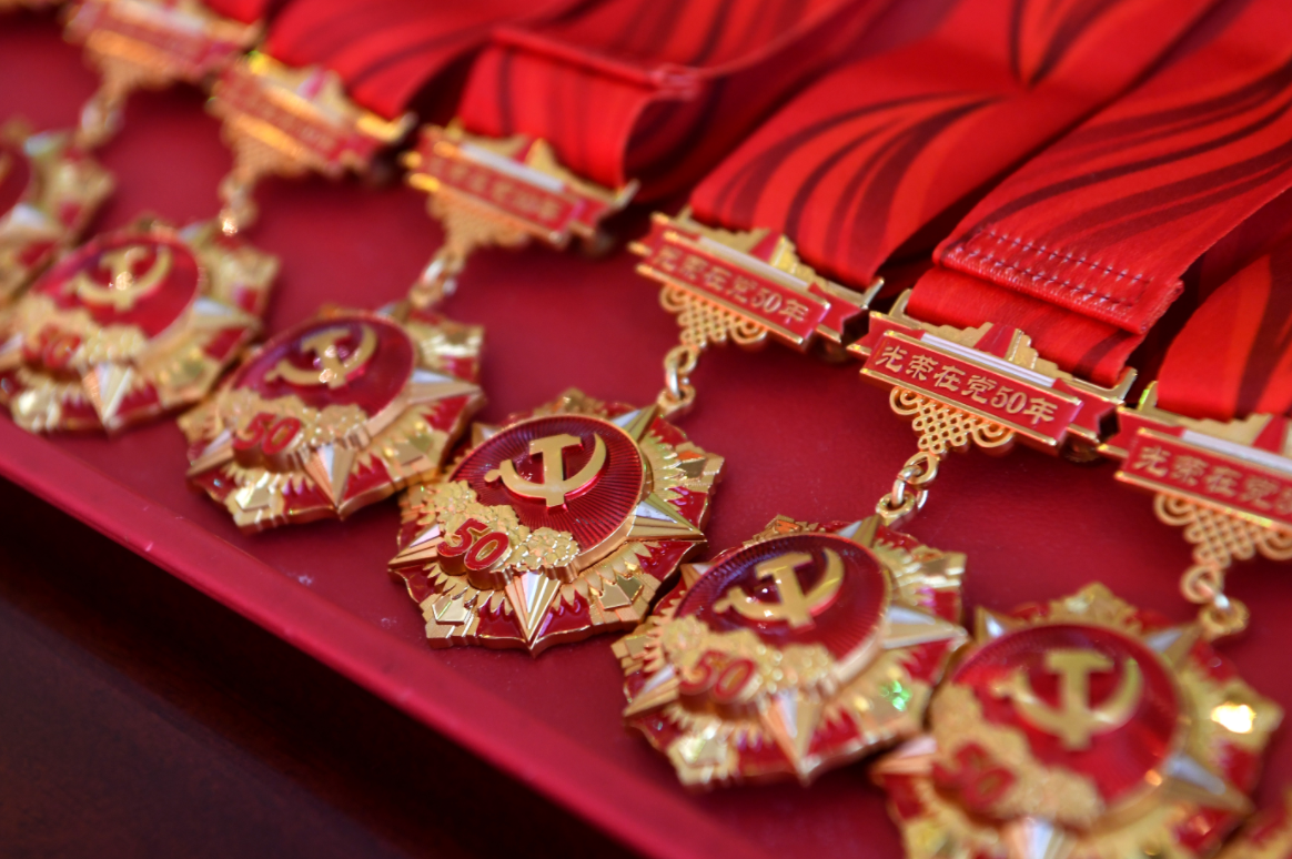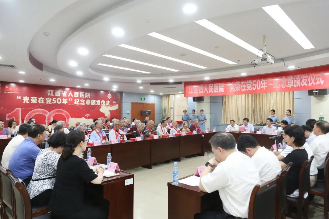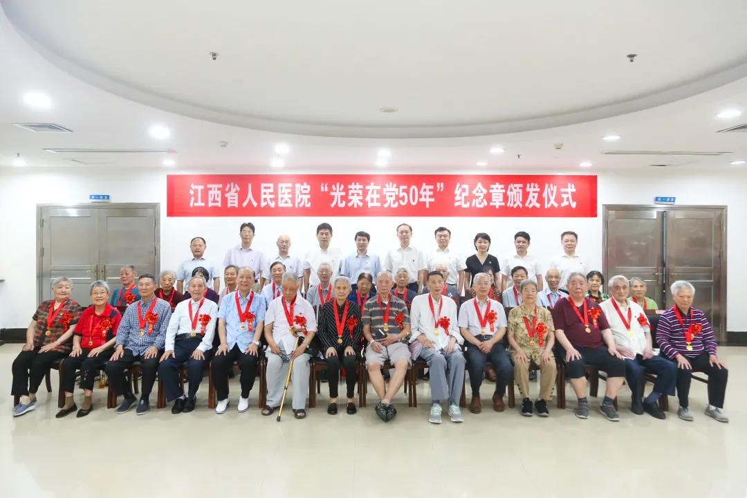 党委书记李秋根表示,一枚枚沉甸甸的纪念章里饱含“俯首甘为孺子牛”的奉献情怀,饱含“心向人民心向党”的担当情怀,饱含“敢叫日月换新天”的奋斗情怀。颁发“光荣在党50年”纪念章,不仅是对50载初心如磐的老党员的充分肯定,更是一种激励。此时此刻,一是要道感谢,江西省人民医院从建院初期发展到如今的规模,取得的成就离不开一代又一代党员前辈们的共同努力和无私奉献。二是要讲传承,广大党员干部要从纪念章的荣光里,感悟敬业实干,涵养为民情怀,以光荣在党50年的老同志为标杆和榜样,传承好党的光荣传统和优良作风。三是要谋发展,希望老党员们继续关心、爱护、支持医院的事业发展;年轻党员干部要继承和发扬党的优良传统,拼搏奉献、接续奋斗,强化初心使命和责任担当,立足本职岗位,更好地为人民健康保驾护航,在医院“十四五”时期建设发展中再立新功。