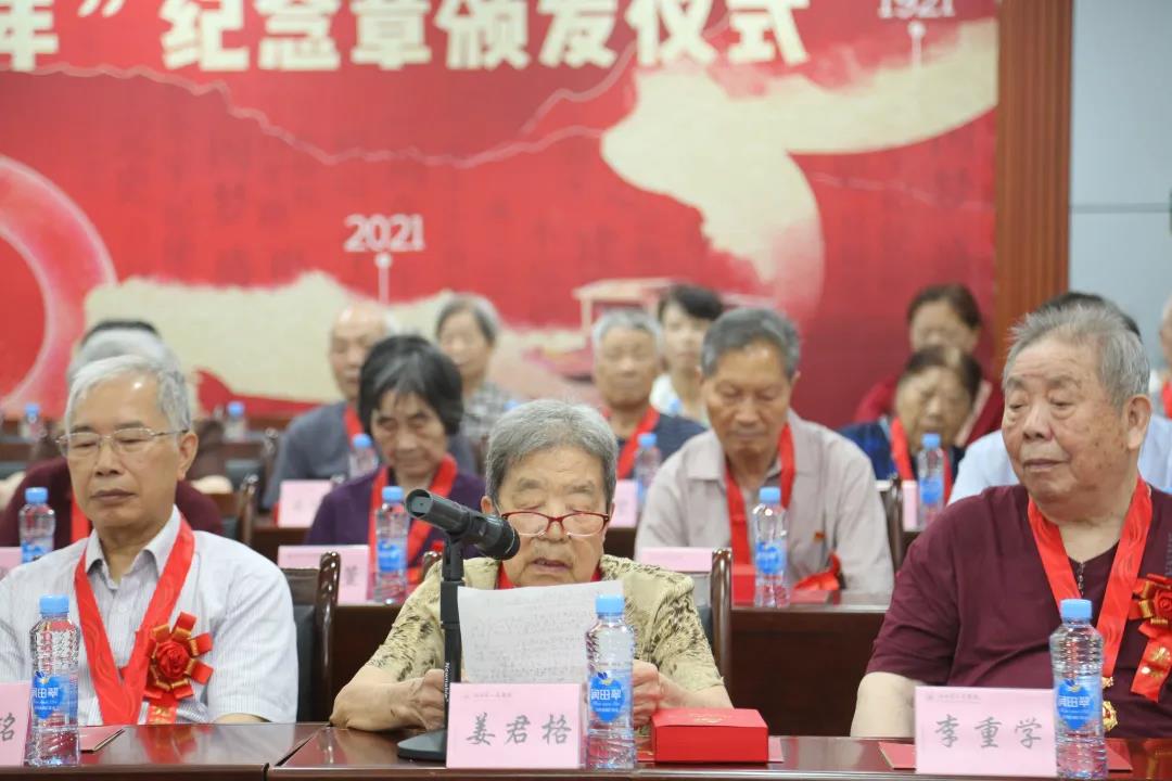 托着金灿灿的纪念章,老党员们难掩激动。纪念章获得者余健民回忆了艰苦奋斗的往事,他说:“一百年的春风化雨,我们一路坚定初心;一百年的春华秋实,我们一路守护初心;一百年的千秋伟业,我们一路永葆初心。入党65年来,在党的领导下,我不负人民、甘于奉献、低调做人、勤奋做事。今后将珍惜时代给予我们的美好生活,牢记人民寄予我们的美好愿景,以坚定的理想、心中的梦想,谱写时代灿烂的音符。”