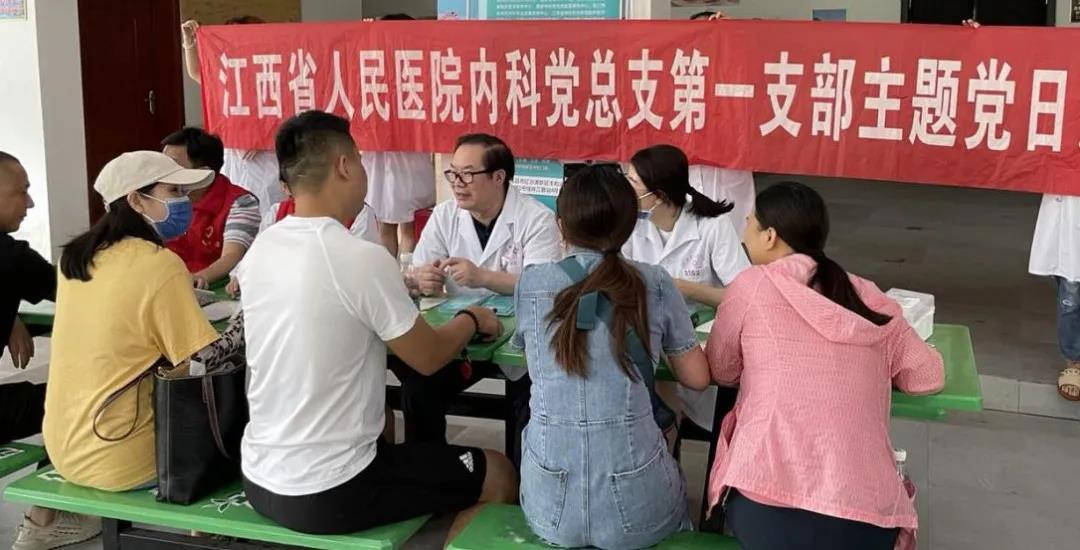 7月31日和8月1日,江西省人民医院内科第一党支部的党员们在院党委的号召下,在支部书记徐仁伵、组织委员曹文锋的组织领导下,来到新建区梅岭镇李家山村开展“送医 送健康 下基层”主题义诊服务活动。这两次义诊活动分别由支部书记徐仁伵、组织委员曹文锋带队,共有8名医疗专家参加,主要义诊项目包括高危心脑血管疾病与糖尿病的筛查,心脑血管病、神经变性疾病等常见、多发的慢性病健康指导。