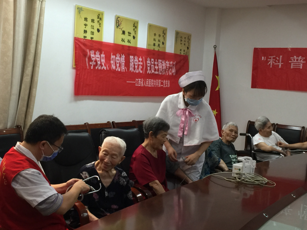 为了进一步推动党史学习教育第二阶段继续走深走实,2021年8月31日,省人民医院内科第二党支部党员走进东湖区养老院,开展“学党史、知党情、跟党走”党员主题教育活动。