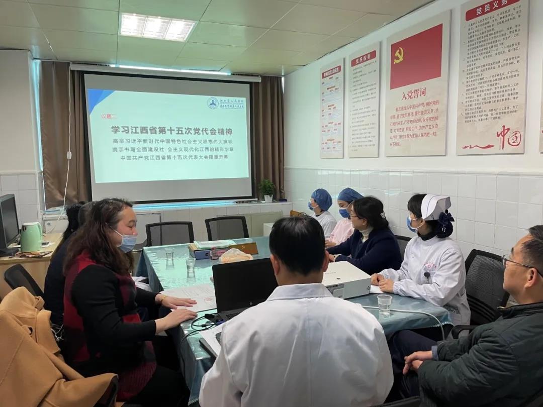 会上,支部书记袁喜红传达学习了省第十五次党代会精神提纲、易炼红同志代表中共江西省第十四届委员会作的题为《高举习近平新时代中国特色社会主义思想伟大旗帜、携手书写全面建设社会主义现代化江西的精彩华章》的报告、易炼红同志参加省直代表团讨论时讲话精神、在中共江西省第十五次代表大会闭幕式及在中共江西省第十五届委员会第一次全会的讲话精神。会议动员大家要切实把思想和行动统一到省党代会精神上来,把智慧和力量凝聚到“作示范、勇争先”目标定位和“五个推进”重要要求上来,埋头苦干、勇毅前行,为携手书写全面建设社会主义现代化江西的精彩华章贡献力量。