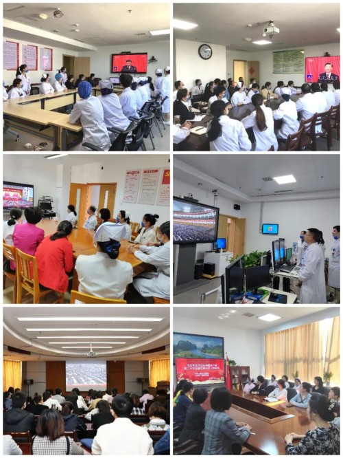 2022年10月16日上午,中国共产党第二十次全国代表大会在北京人民大会堂隆重开幕,本次大会的主题是“高举中国特色社会主义伟大旗帜,全面贯彻习近平新时代中国特色社会主义思想,弘扬伟大建党精神,为全面建设社会主义现代化国家、全面推进中华民族伟大复兴而团结奋斗”。江西省人民医院(南昌医学院第一附属医院)在家党政领导班子成员、中层干部140余人在爱国路院区主会场集中学习观看。同时,全院各党总支分别组织党员干部、离退休老党员、医院赴湘雅医院学习人员900余人在分会场、党员活动室、支部会议室进行了集中收听收看。坚守在医院服务窗口、临床一线岗位上的党员同志们利用工作间隙,通过PC端、移动端等平台,实时学习会议精神。