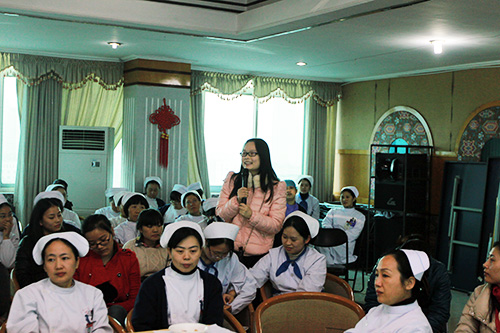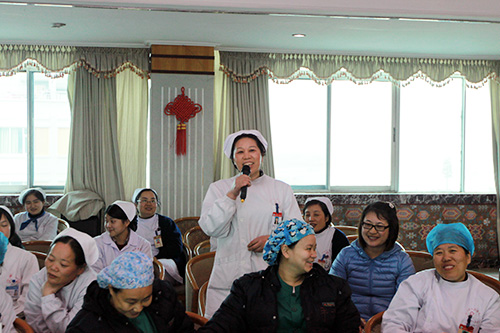 尊师重教是我国的优良传统,江西省人民医院护理部每年年中、年末都会举办师生座谈会,拉近老师和学生的距离,增进彼此了解,以为更有效地指导带教工作。12月10日下午,2013年年终师生座谈会拉开帷幕,外科总护士长万欢儿和干部病房总护士长吴克芹主持会议,护理部分管带教干事周清萍、各科室护士长、带教组长、实习组长、实习生代表百余人参会。